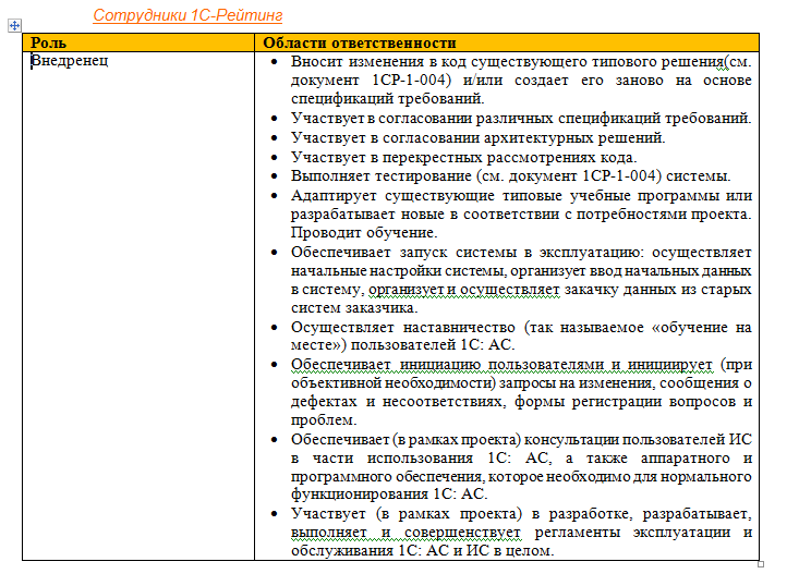 Таким образом, сотрудникам с течением времени кроме программирования необходимо овладеть навыками (если таковых еще не получено) системного анализа бизнес-процессов и их реинжиниринга, проектирования, описания требований к системе, проверки разработанного функционала, разработки инструкций.