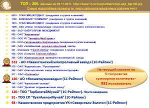 Масштабы, измеряемые количеством пользователей системы (максимум по 1С на одном внедрении 5010 пользователей, 1С-Рейтинг на одном внедрении – 512 пользователей).