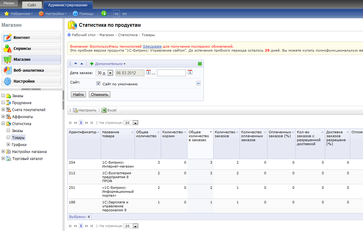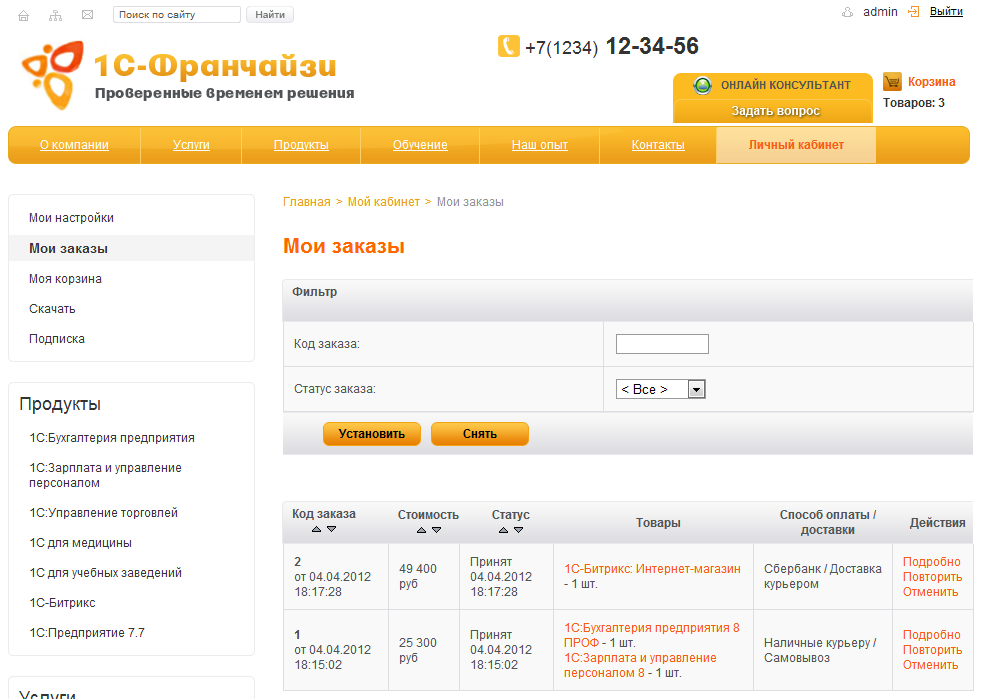 Подобным образом интернет-магазин выглядит и работает с точки зрения покупателя. А как же владелец интернет-магазина контролирует процесс продаж, какие инструменты доступны ему для этого?
