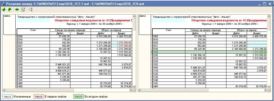 Если найдены какие-либо расхождения в данных, соответствующие счета и отличающиеся суммы будут выделены цветом.