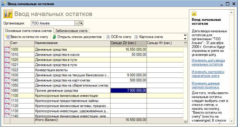 Если по каким-либо причина принято решение о переходе на новую учетную систему без конвертации исходных данных, то для удобства начало работы можно воспользоваться Помощником ввода начальных остатков (меню Предприятие → Ввод начальных остатков).