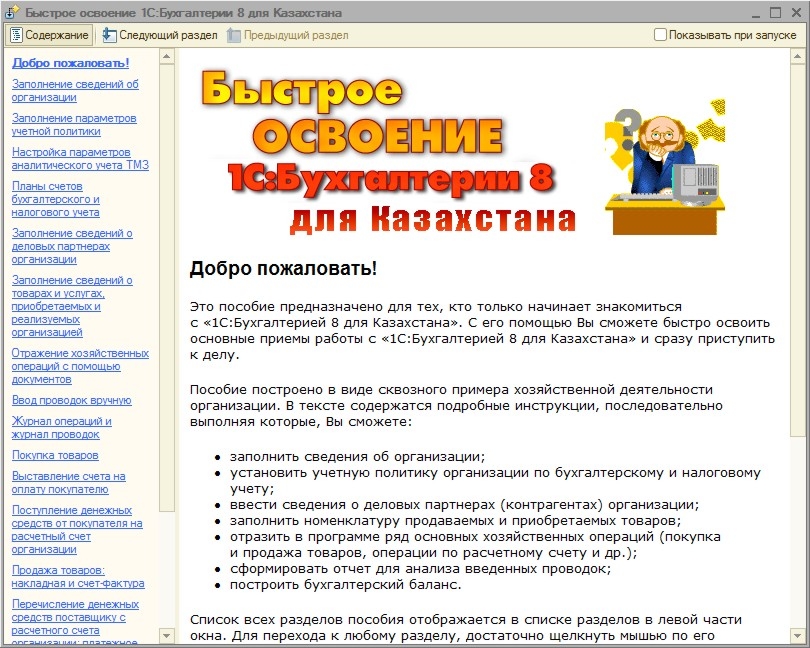 Данная статья поможет Вам быстро освоить основные приемы работы с «1С:Бухгалтерией 8 для Казахстана» и сразу приступить к делу.