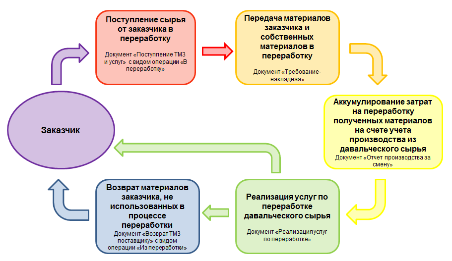 Схему передачи собственного сырья в переработку можно представить в следующем виде: