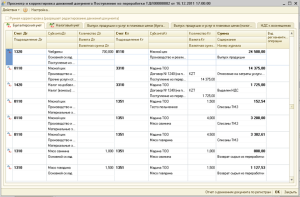 При проведении документа «Реализация услуг по переработке» формируются проводки: