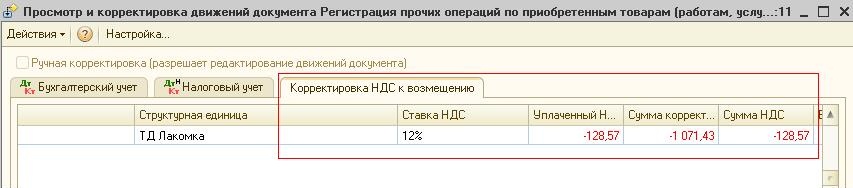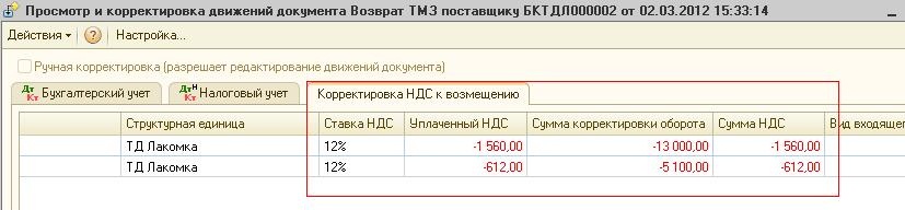 Также сформируются записи в регистре «Корректировка НДС к возмещению».
