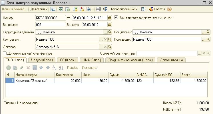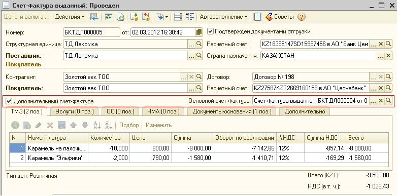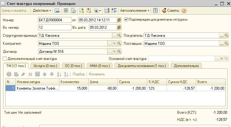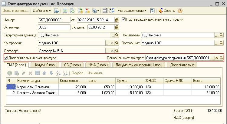 Данный документ будет иметь признак «Дополнительный счет-фактура» и будет «связан» с основным счетом-фактурой полученным.