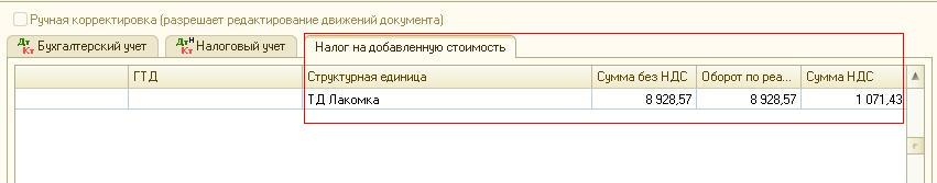 Важно! Проводка сформируется только по регистрации суммы НДС, проводку по увеличению дебиторской задолженности перед покупателем необходимо сформировать вручную.