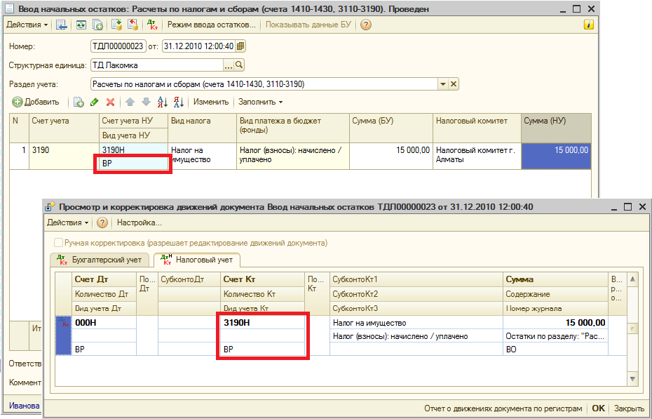 Особенности ввода начальных остатков в конфигурации «Бухгалтерия для Казахстана»