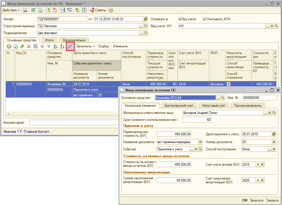 В контексте данной статьи рассмотрим только некоторые особенности работы с документом «Ввод начальных остатков по ОС».