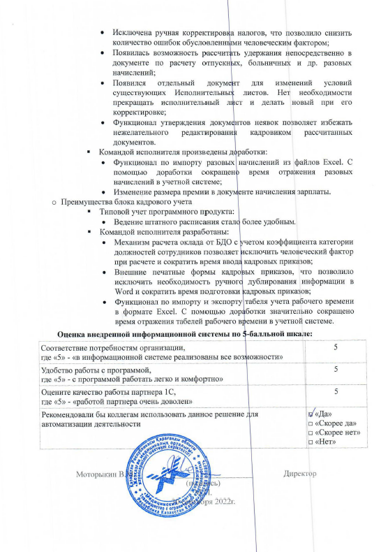 Перевод учетной системы ТОО «Медицинский центр Жезказган» на актуальную редакцию 3.1 используемого типового решения «Зарплата и управление персоналом для Казахстана».Команда исполнителя своевременно и эффективно выполнила все запланированные задачи для достижения поставленной цели проекта.