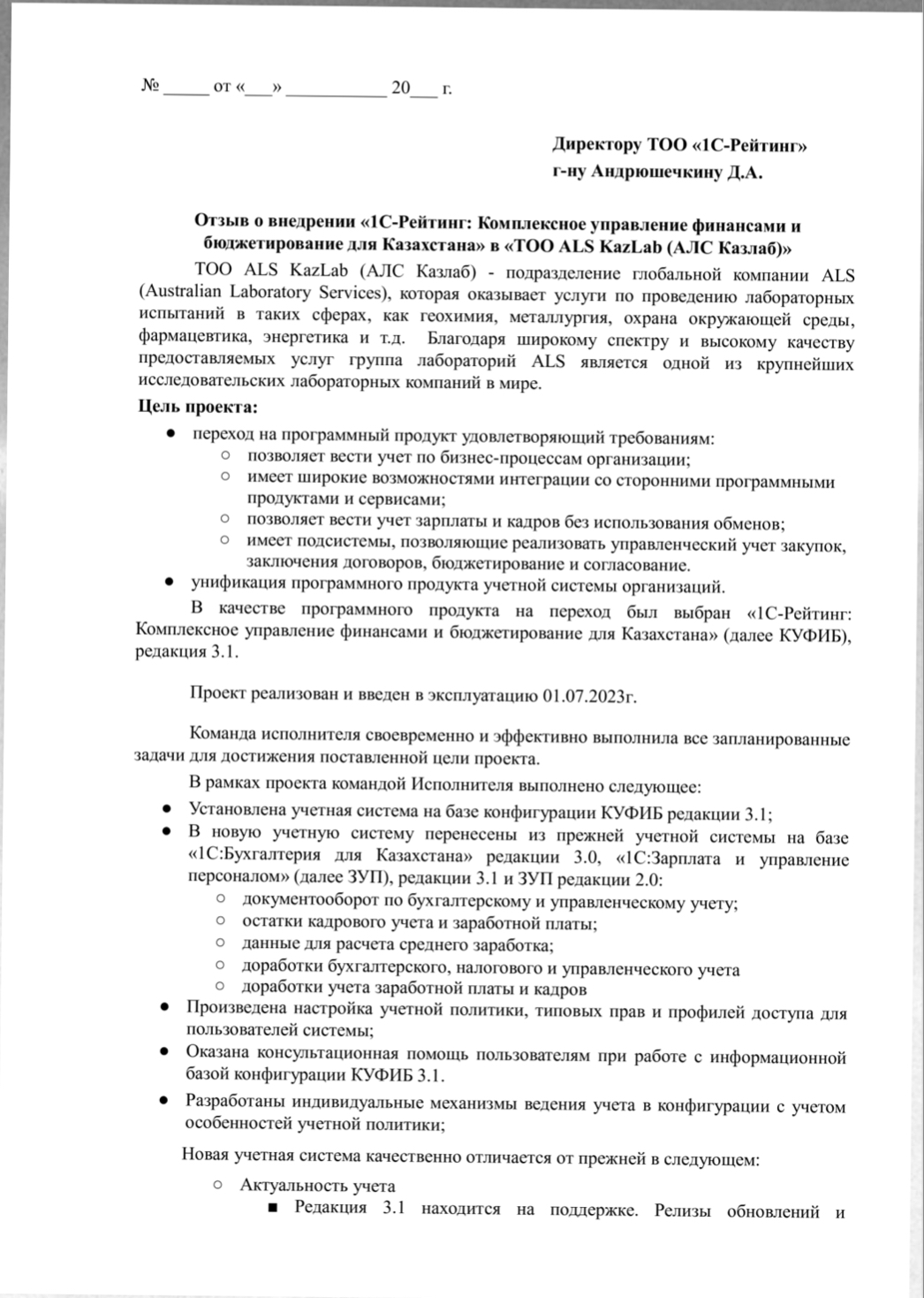 - Установлена учетная система на базе конфигурации КУФИБ редакции 3.1;