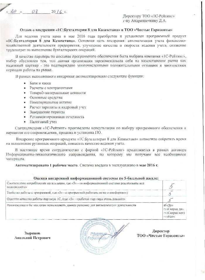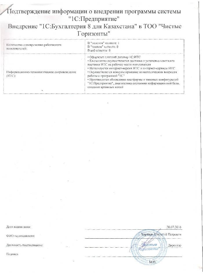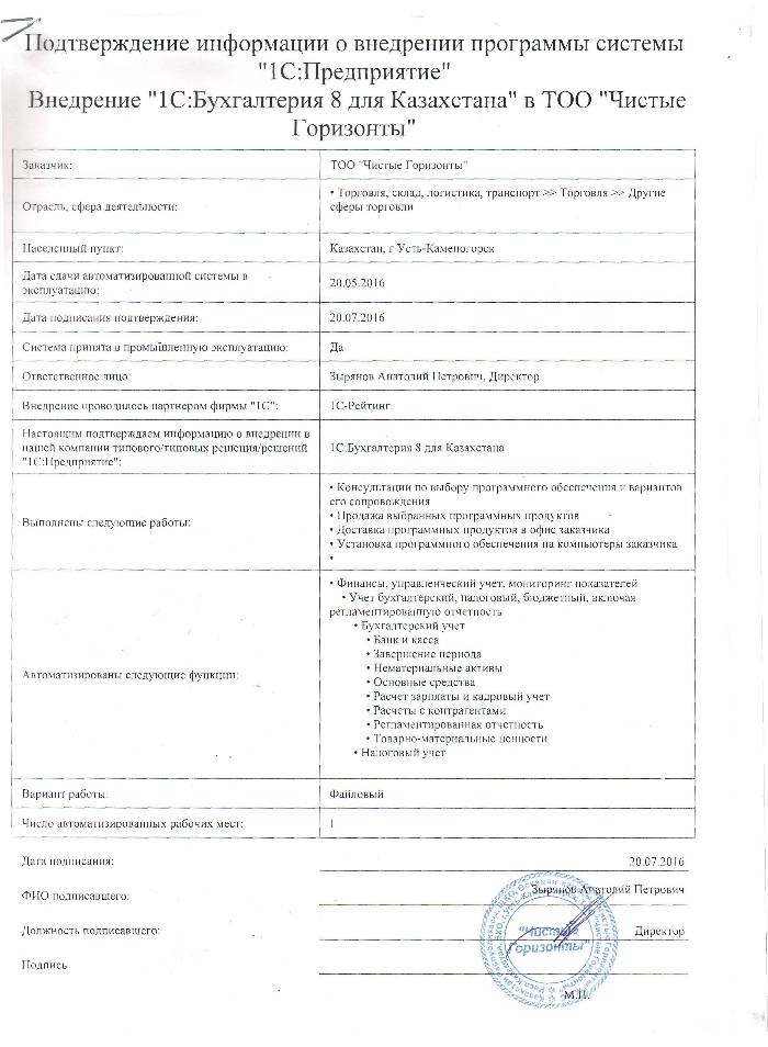 | Внедренное типовое решение: | 1С:Бухгалтерия 8 для Казахстана |