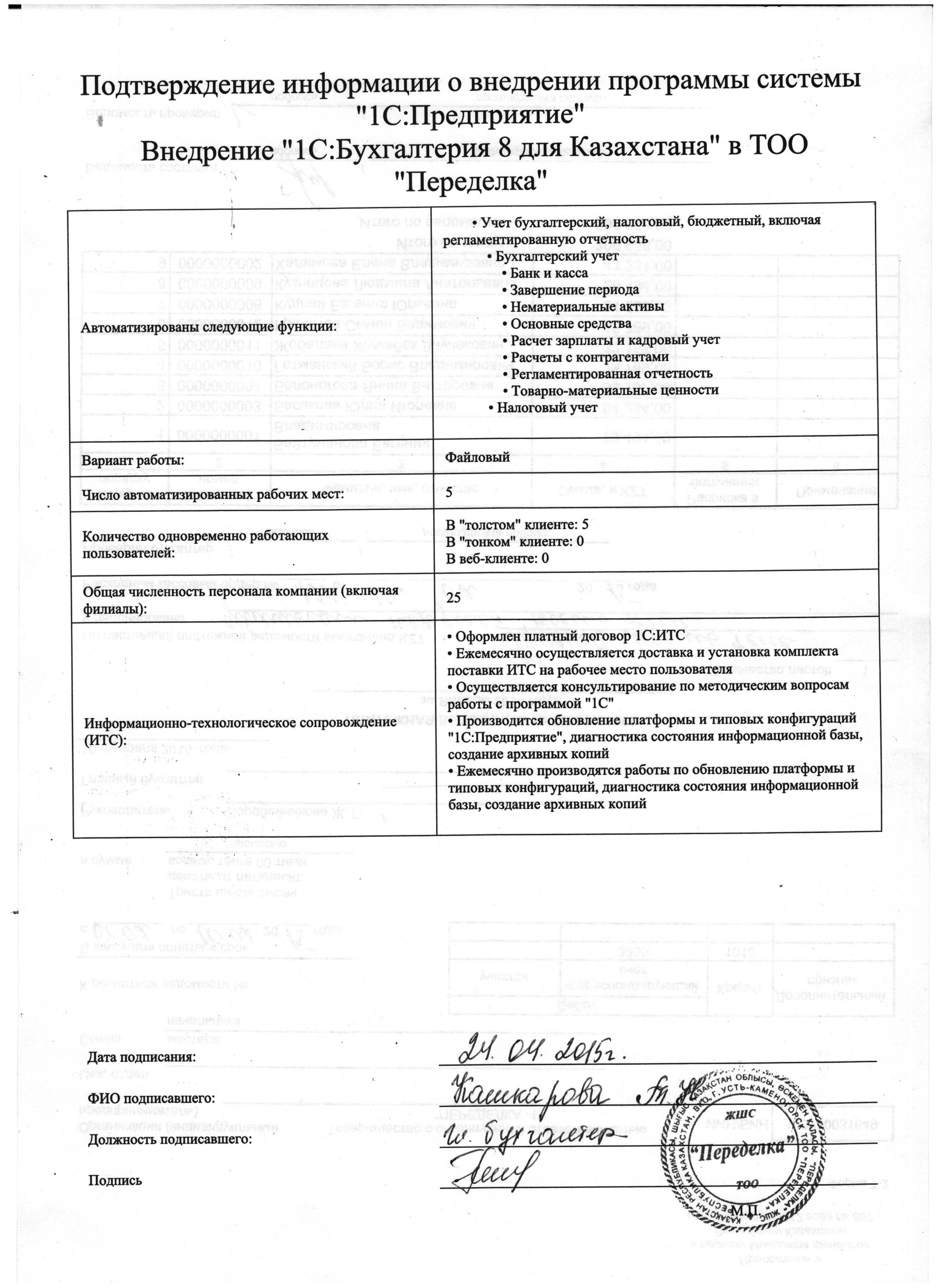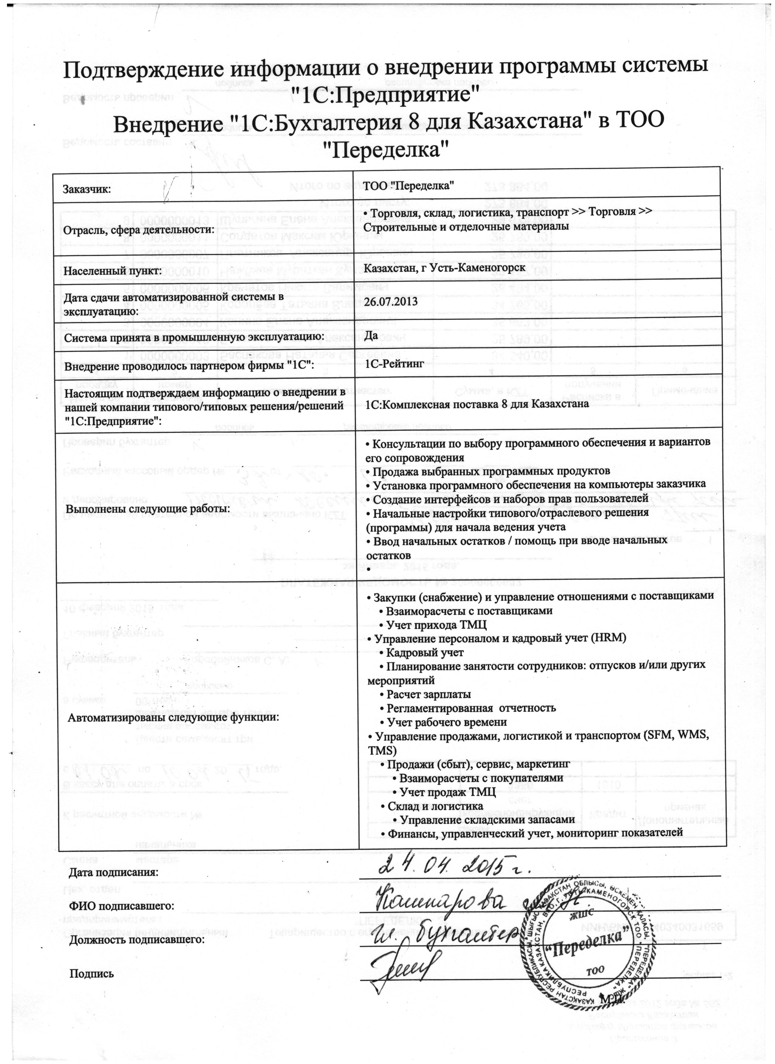 | Внедренное типовое решение: | 1С:Управление торговым предприятием для Казахстана |