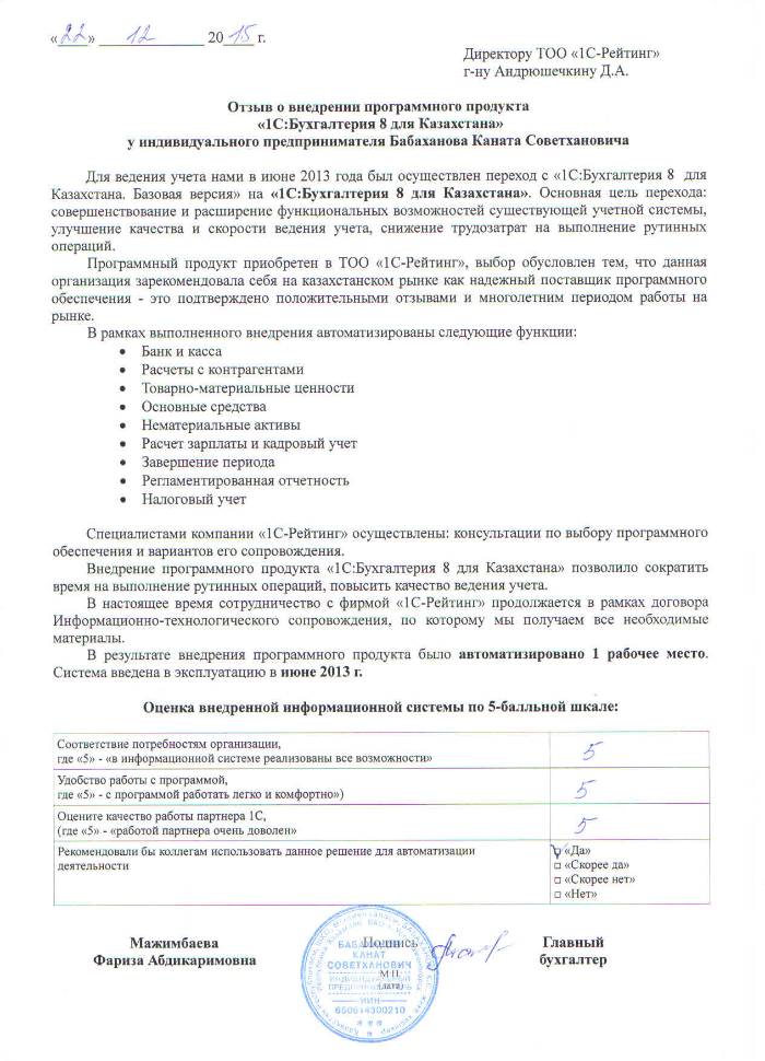 | Внедренное типовое решение: | 1С:Бухгалтерия 8 для Казахстана |