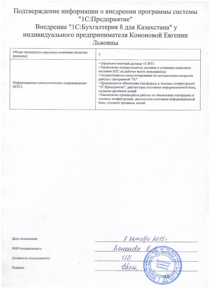 - Оформлен платный договор 1С:ИТС