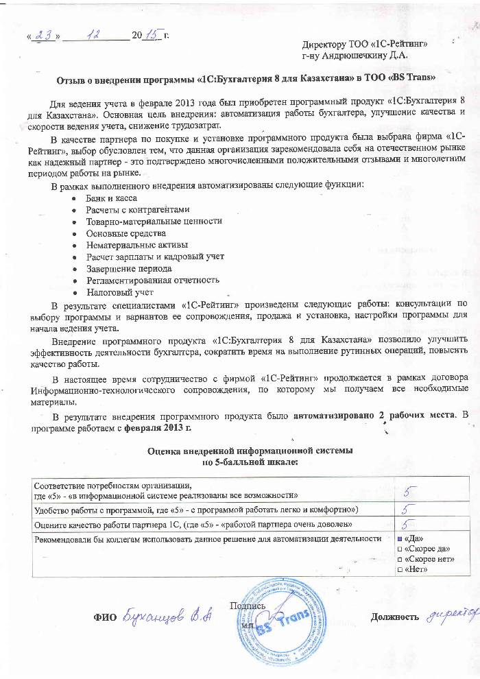 | Внедренное типовое решение: | 1С:Бухгалтерия 8 для Казахстана |