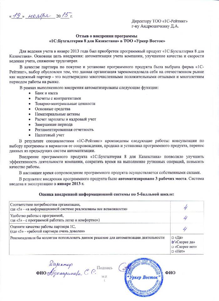 | Внедренное типовое решение: | 1С:Бухгалтерия 8 для Казахстана |