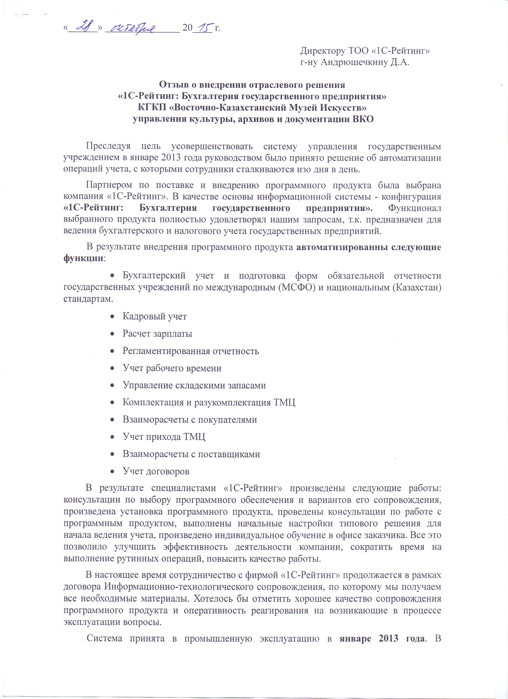 | Внедренное отраслевое решение: | 1С-Рейтинг: Бухгалтерия государственного предприятия |