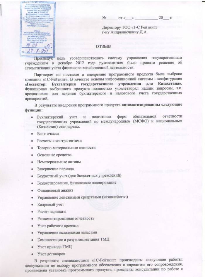 Внедренное отраслевое решение: Госсектор: Бухгалтерия государственного учреждения для Казахстана