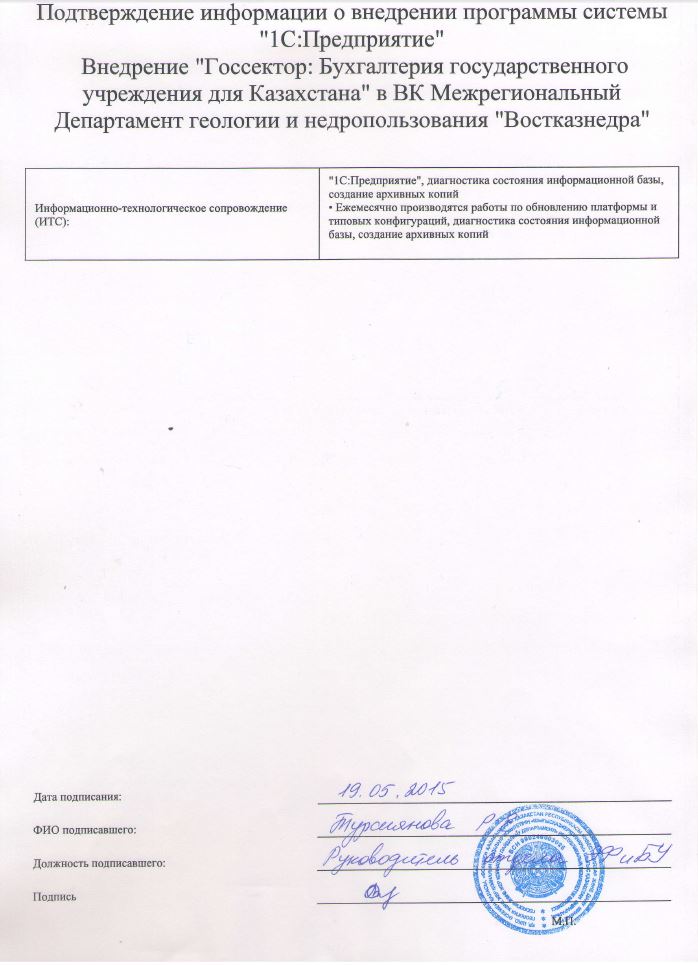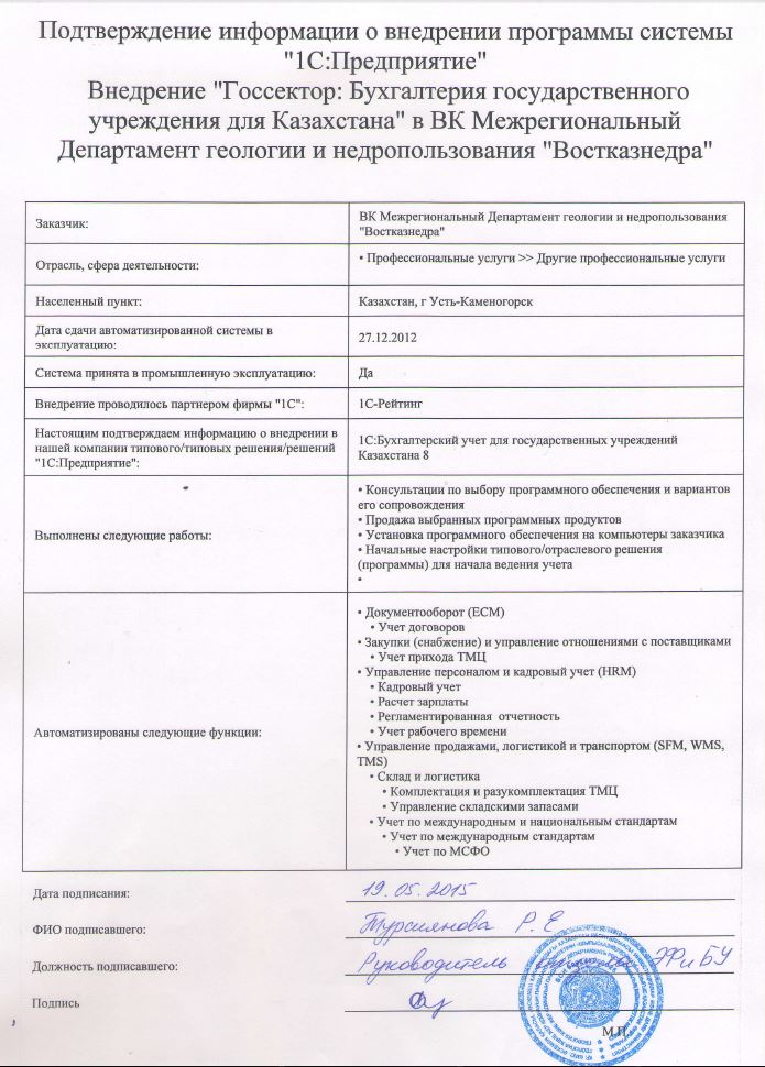 Внедрение «Госсектор: Бухгалтерия государственного учреждения для Казахстана» в межрегиональном департаменте геологии и недропользования «Востказнедра»