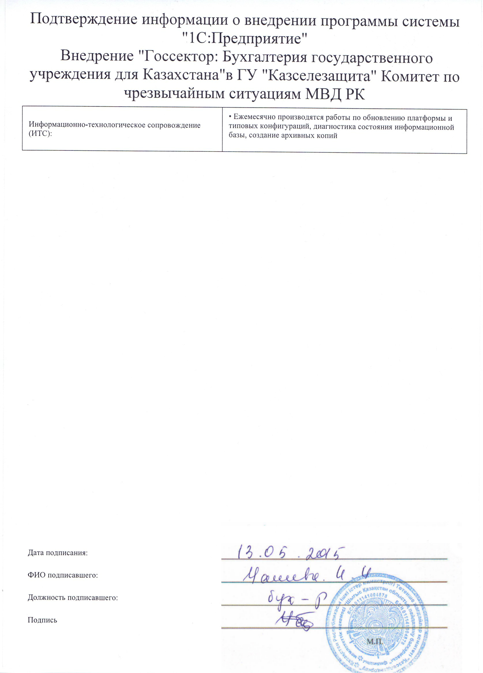 - Ежемесячно производятся работы по обновлению платформы и типовых конфигураций, диагностика состояния информационной базы, создание архивных копий