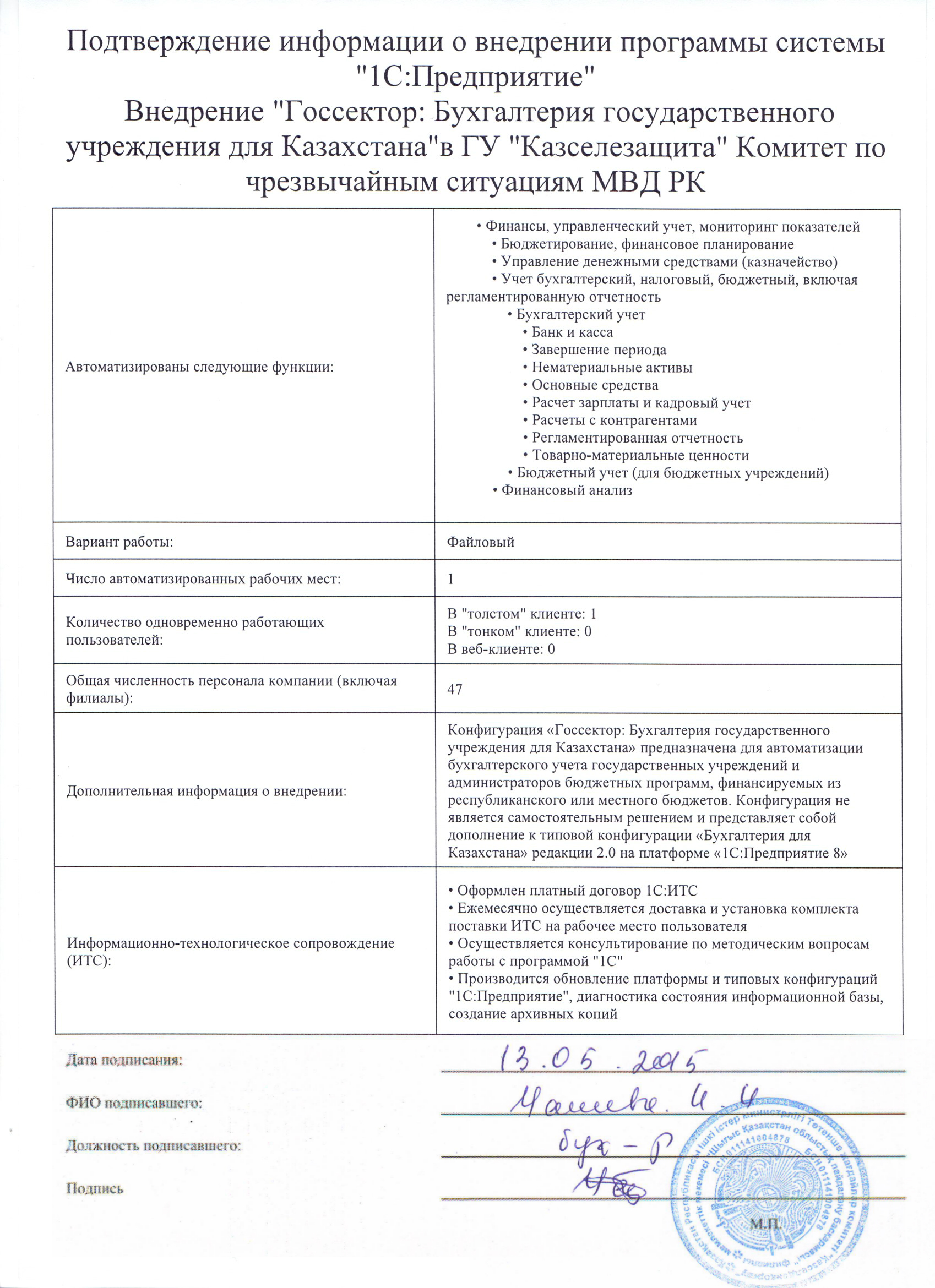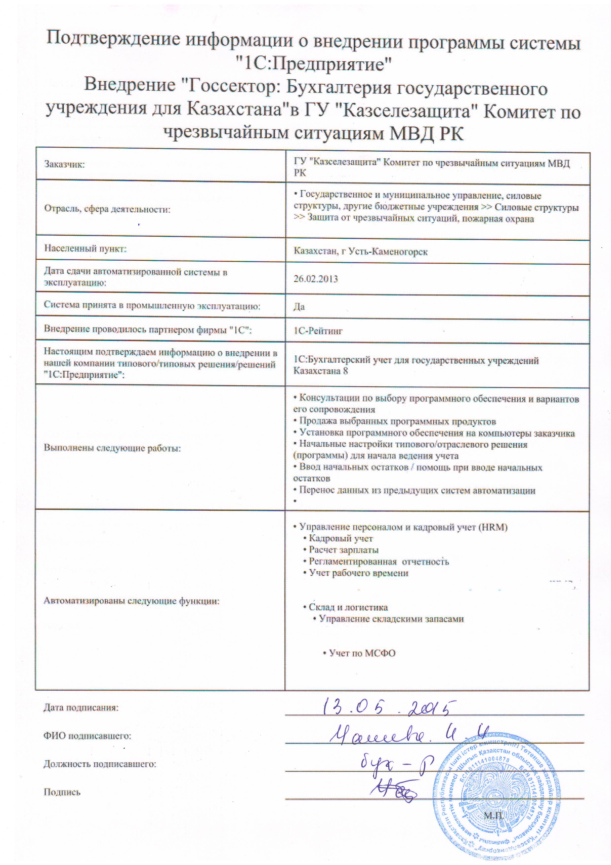 | Внедренное отраслевое решение: | Госсектор: Бухгалтерия государственного учреждения для Казахстана |
