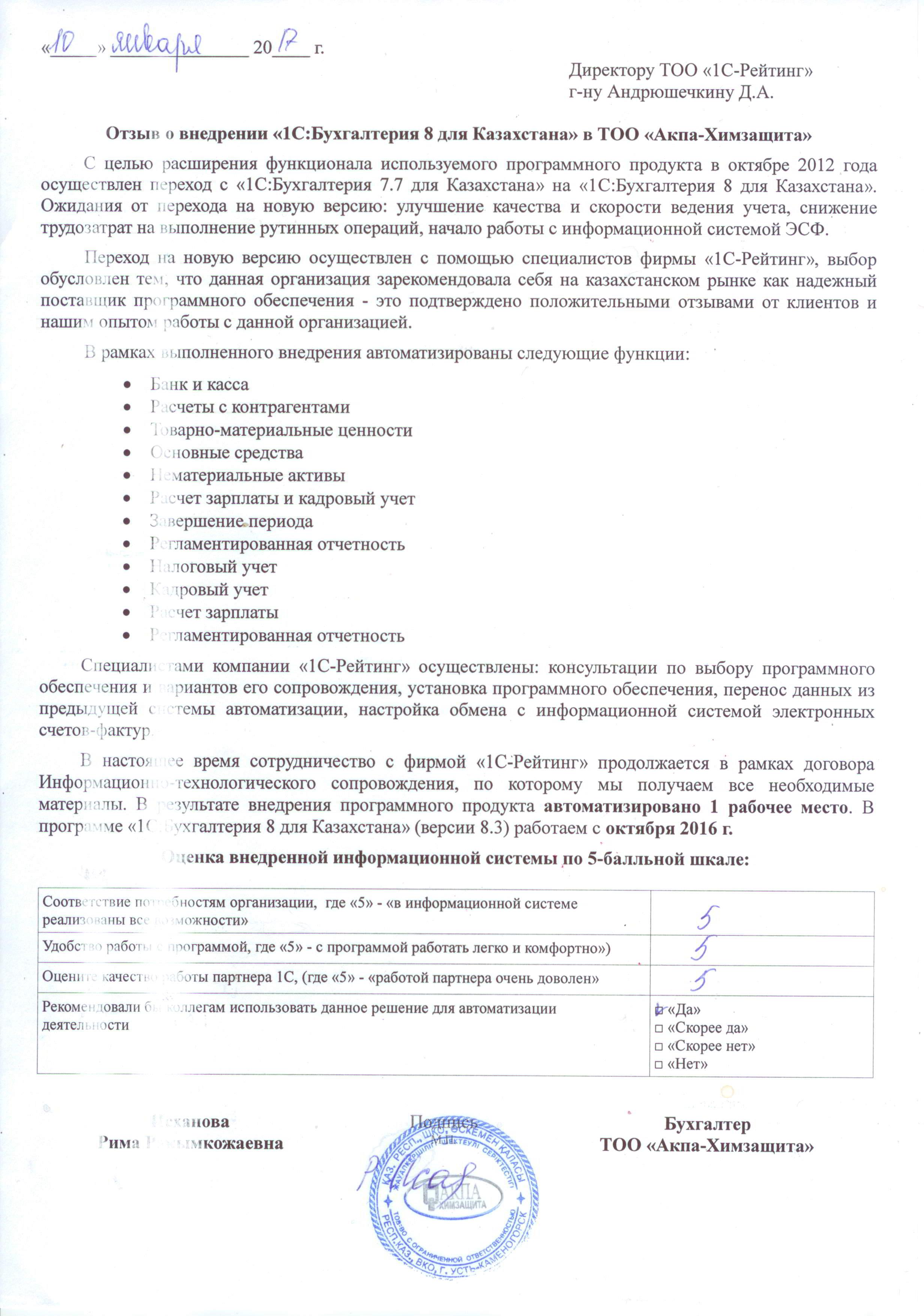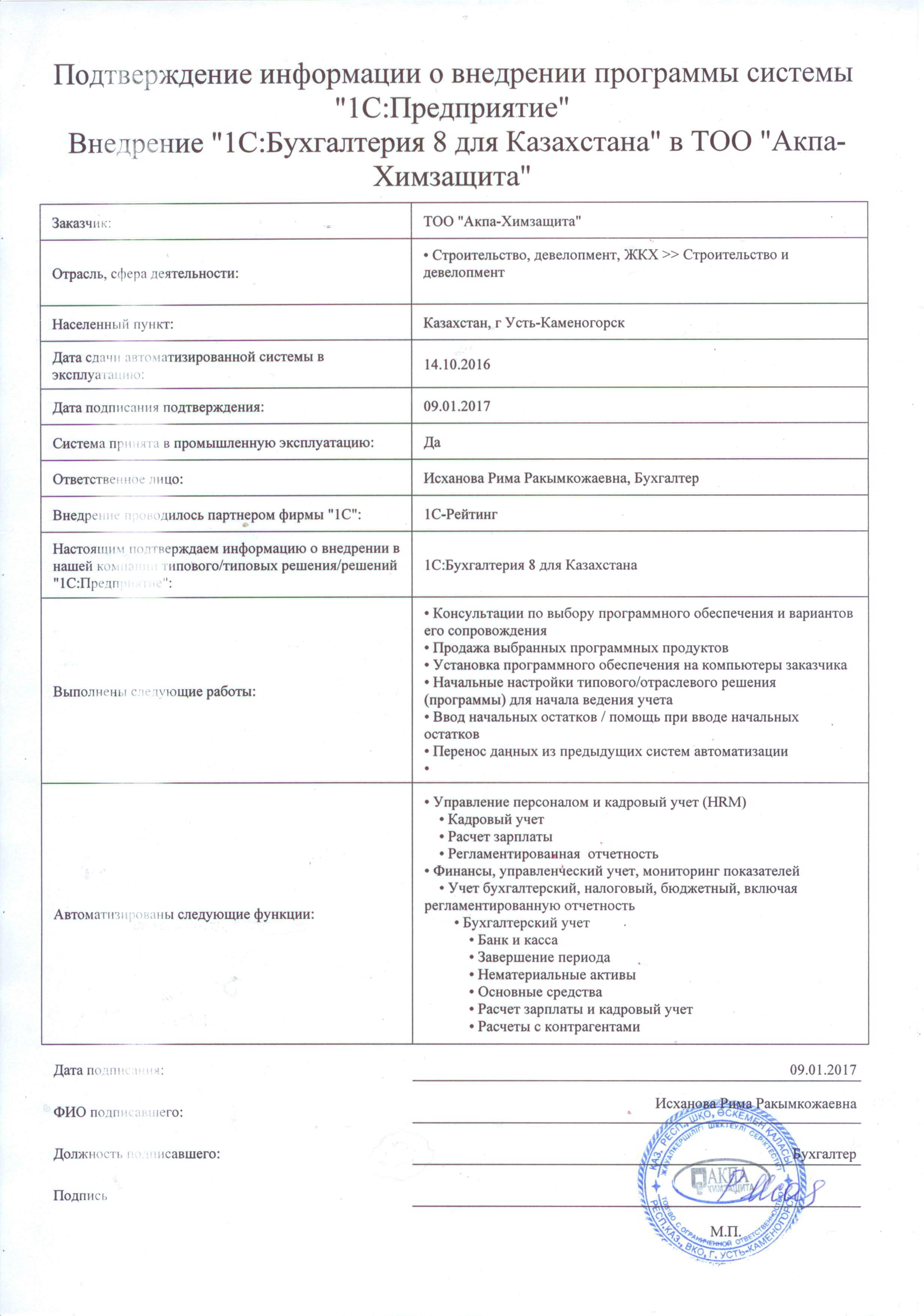 | Внедренное типовое решение: | 1С:Бухгалтерия 8 для Казахстана |
