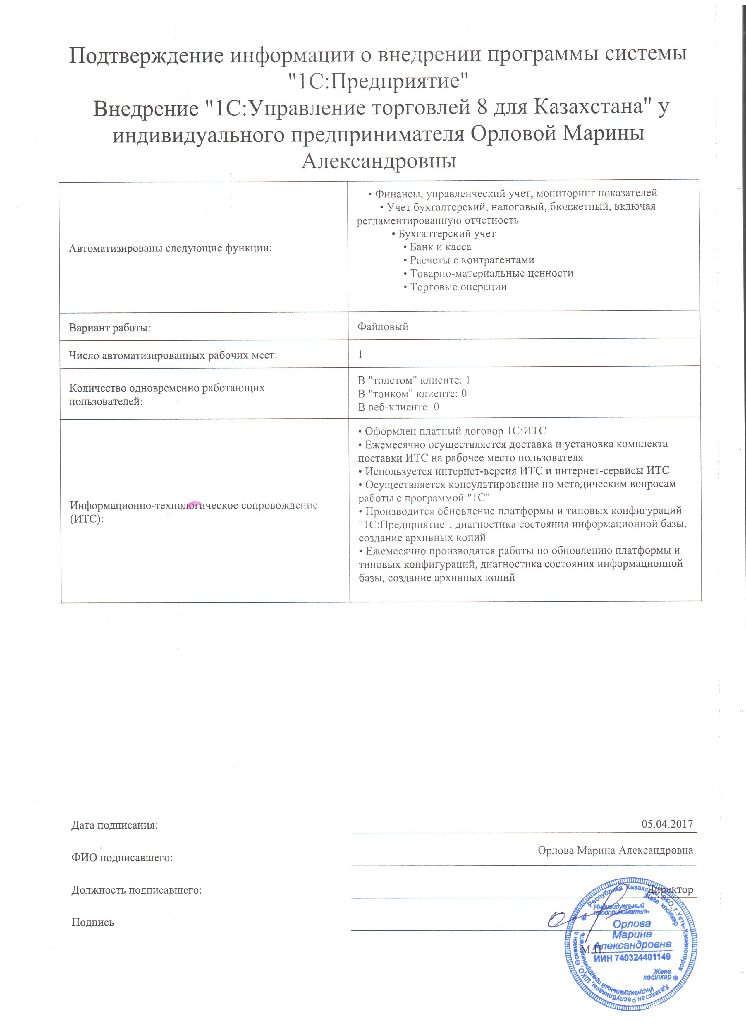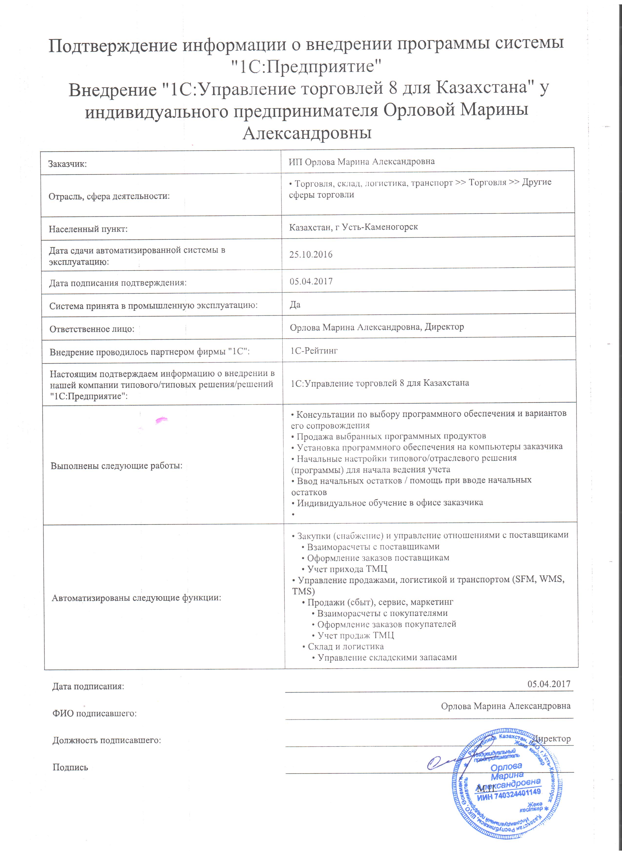 | Внедренное типовое решение: | 1С:Управление торговлей 8 для Казахстана |