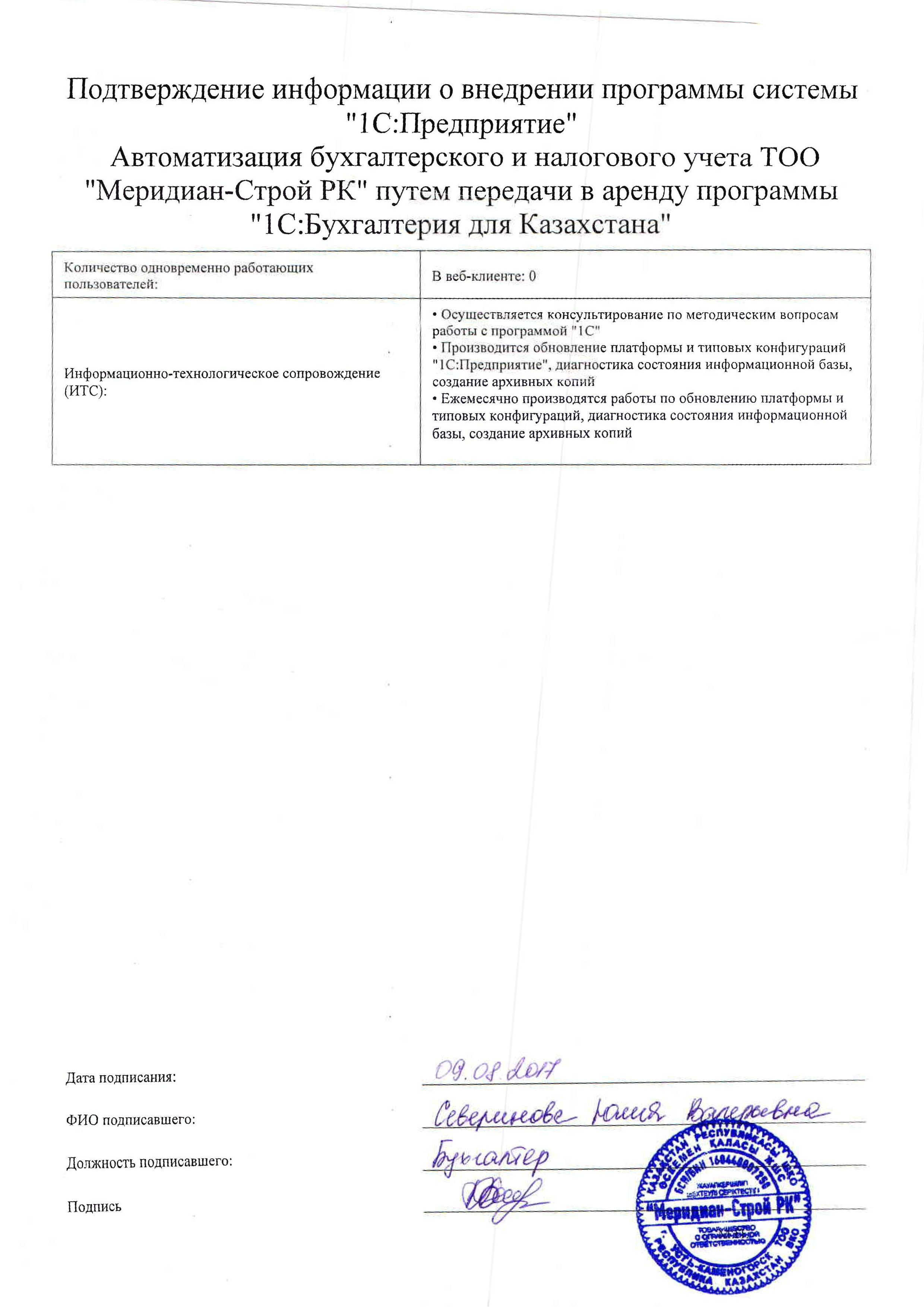 | Арендованное типовое решение: | 1С:Бухгалтерия для Казахстана |