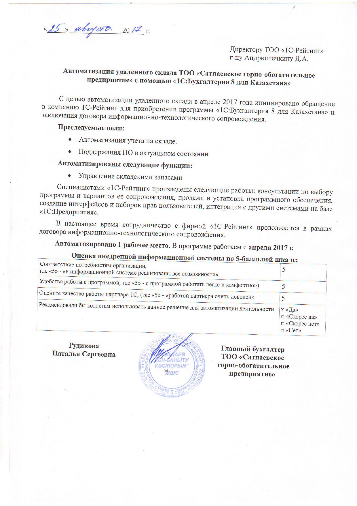 | Внедренное типовое решение: | 1С:Бухгалтерия 8 для Казахстана |