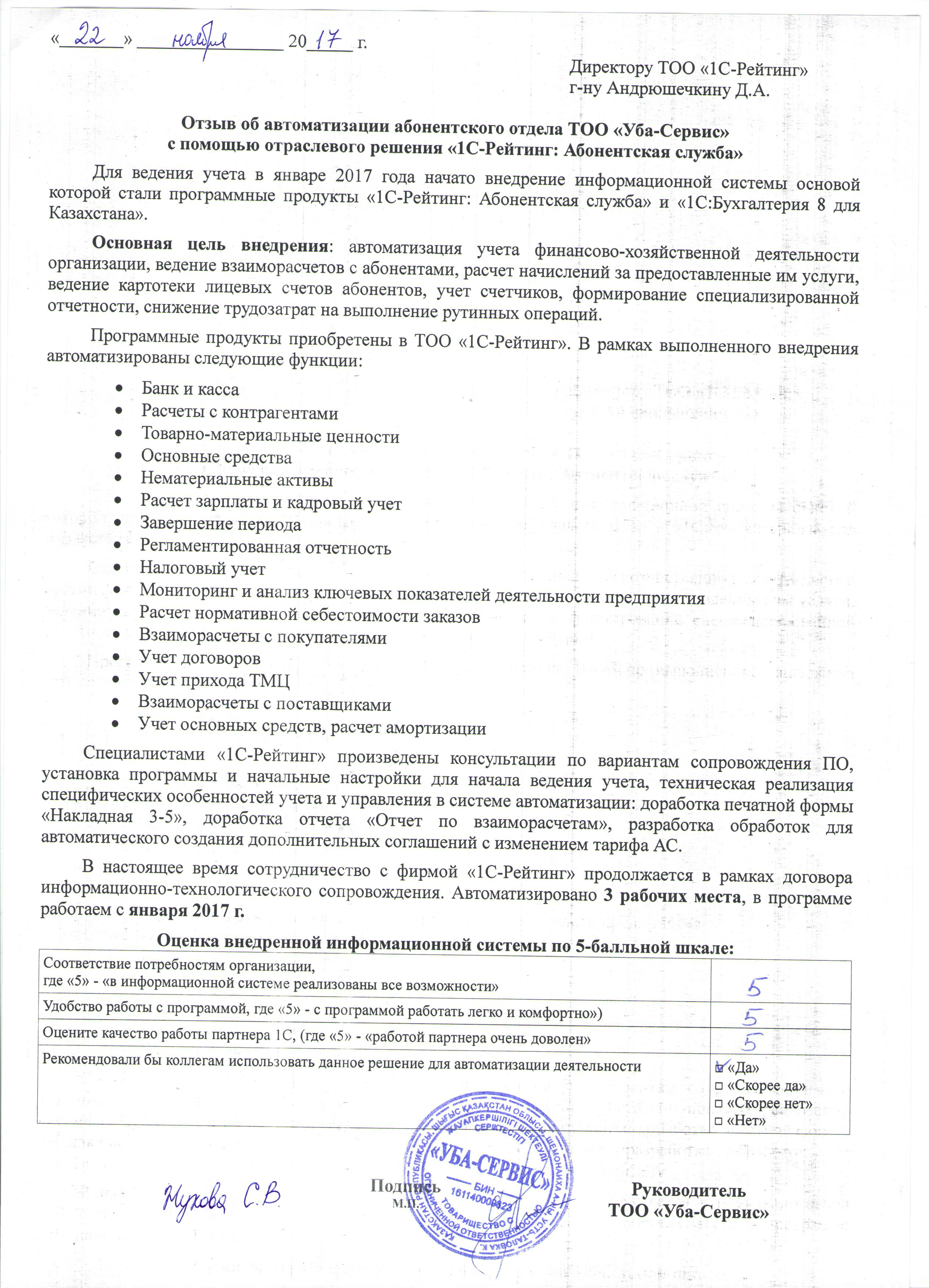 | Внедренные решения: | 1С-Рейтинг: Абонентская служба |