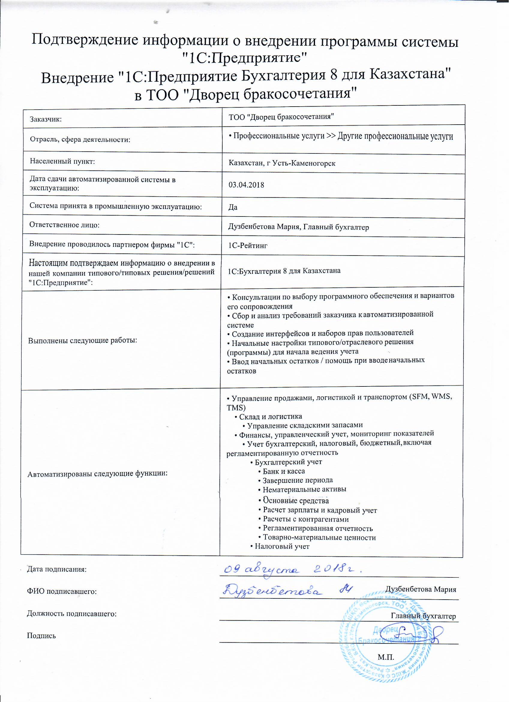 | Внедренное типовое решение: | 1С:Бухгалтерия 8 для Казахстана |