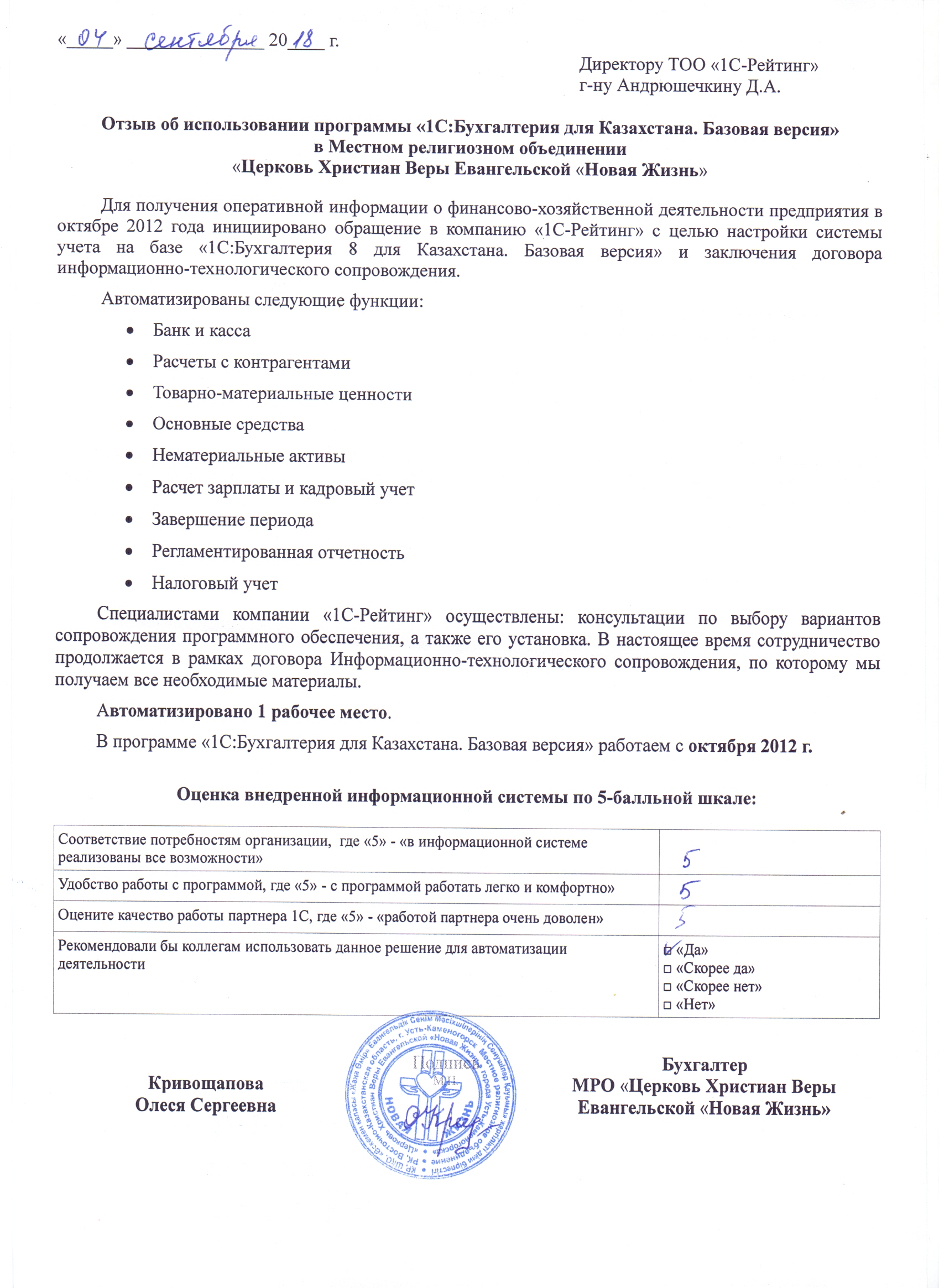 | Внедренное типовое решение: | 1С:Бухгалтерия для Казахстана. Базовая версия |