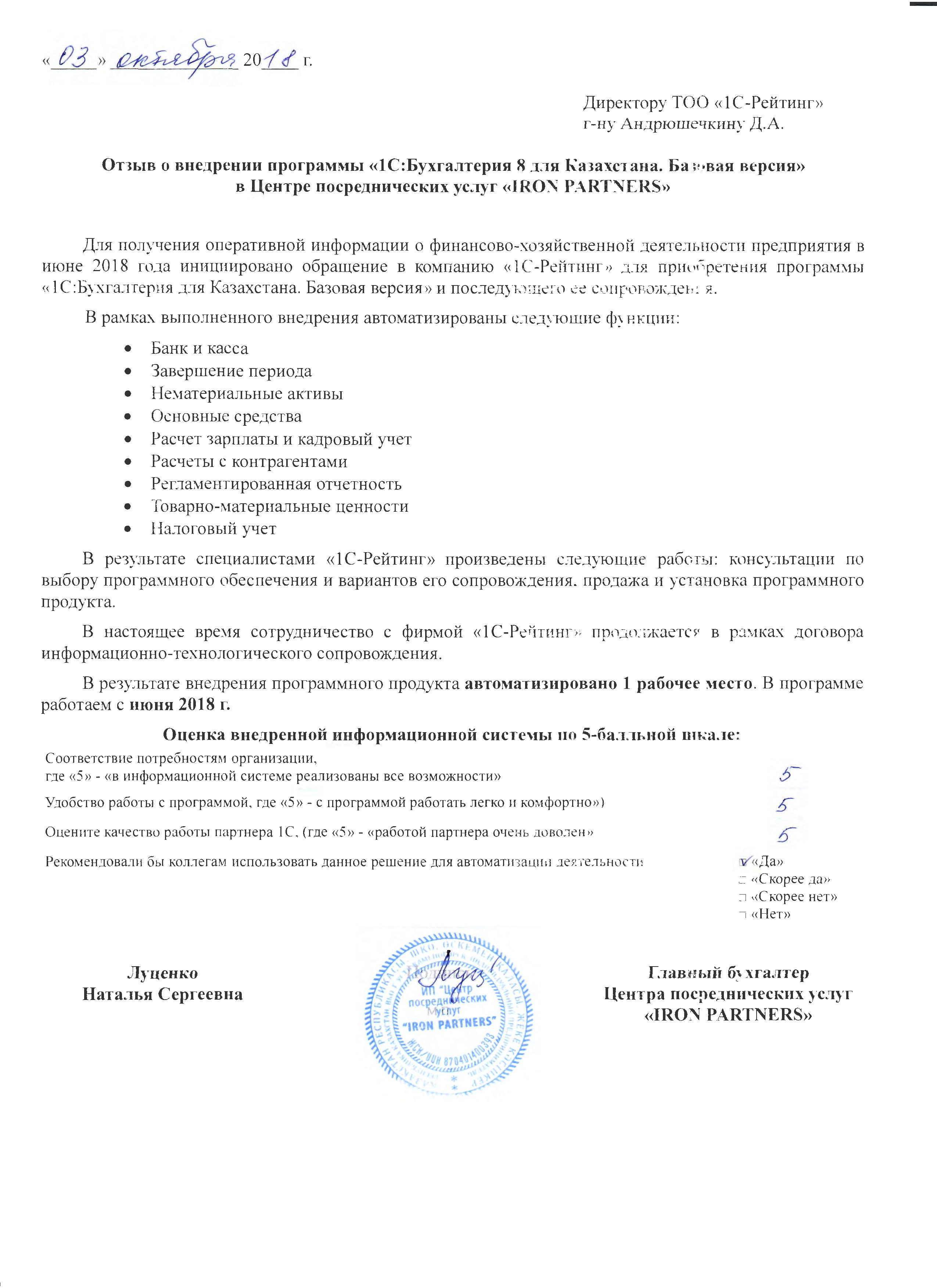 Центре посреднических услуг «IRON PARTNERS»