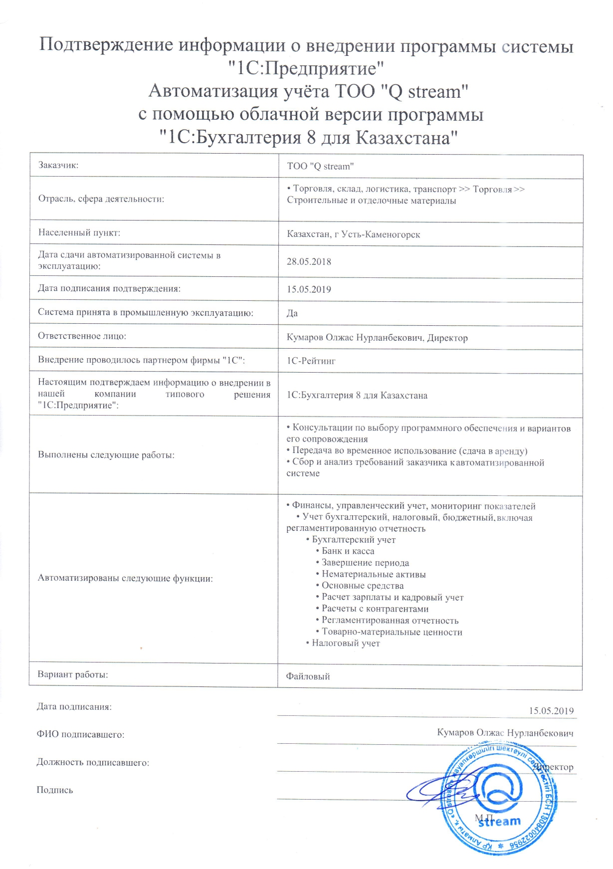 | Арендованное типовое решение: | 1С:Бухгалтерия для Казахстана |
