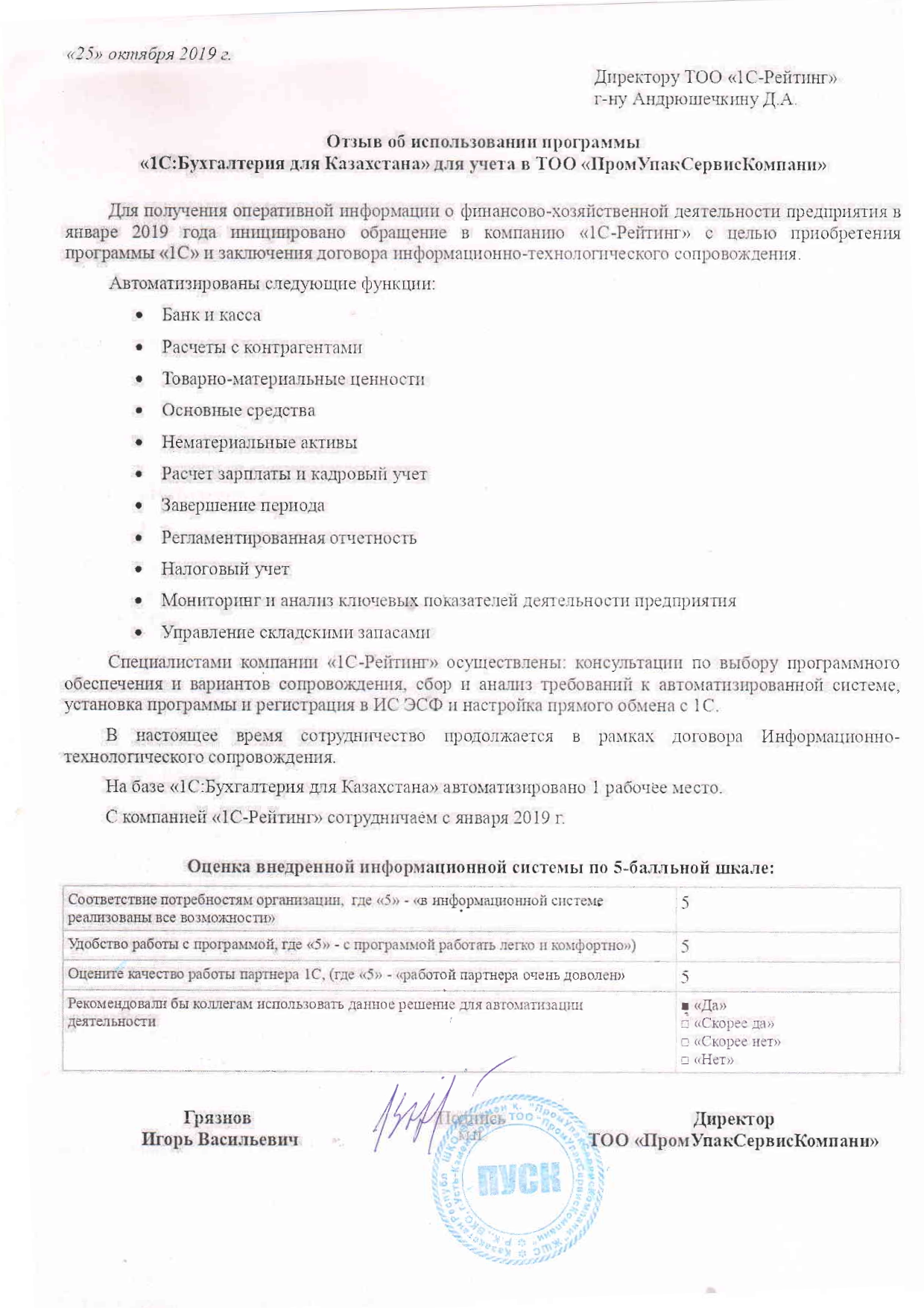 | Внедренное типовое решение: | 1С:Бухгалтерия 8 для Казахстана |