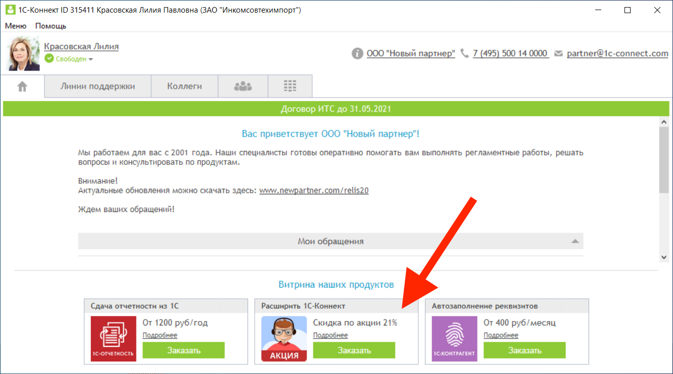 - Подключите или продлите расширенный тариф 1С-Коннект на 12 месяцев со скидкой 21% до 31 декабря 2020 года.