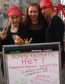 К Международному Дню защиты Интеллектуальной собственности на Набережной Иртыша в рамках «Недели добрых дел», проводимой Молодежным Информационным Центром ВКО, Редакцией газеты «Молодёжный Клуб» и «Клубом молодых журналистов» при поддержке компании «1С-Рейтинг», была проведена акция «Хочу сказать НЕТ компьютерным пиратам!», в которой прохожие и школьники оставляли свое мнение на флипе и получали призы.