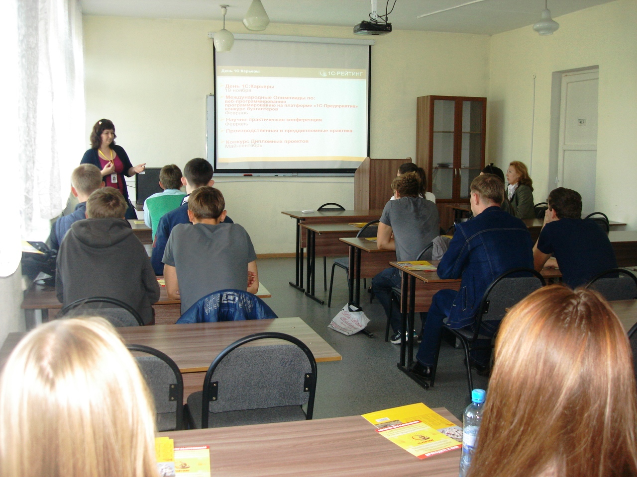 В рамках сотрудничества с учебными заведениями проведена 1-я встреча со студентами филиала Московского государственного университета экономики, статистики и информатики. Студентам и преподавателям рассказали о программе сотрудничества с компанией 1С-Рейтинг и планируемых мероприятиях на 2015-2016 год, а также встреча была посвящена одной из интересных и полезных тем для студентов специальности IT-технологии «Об авторском праве на интеллектуальную собственность».
