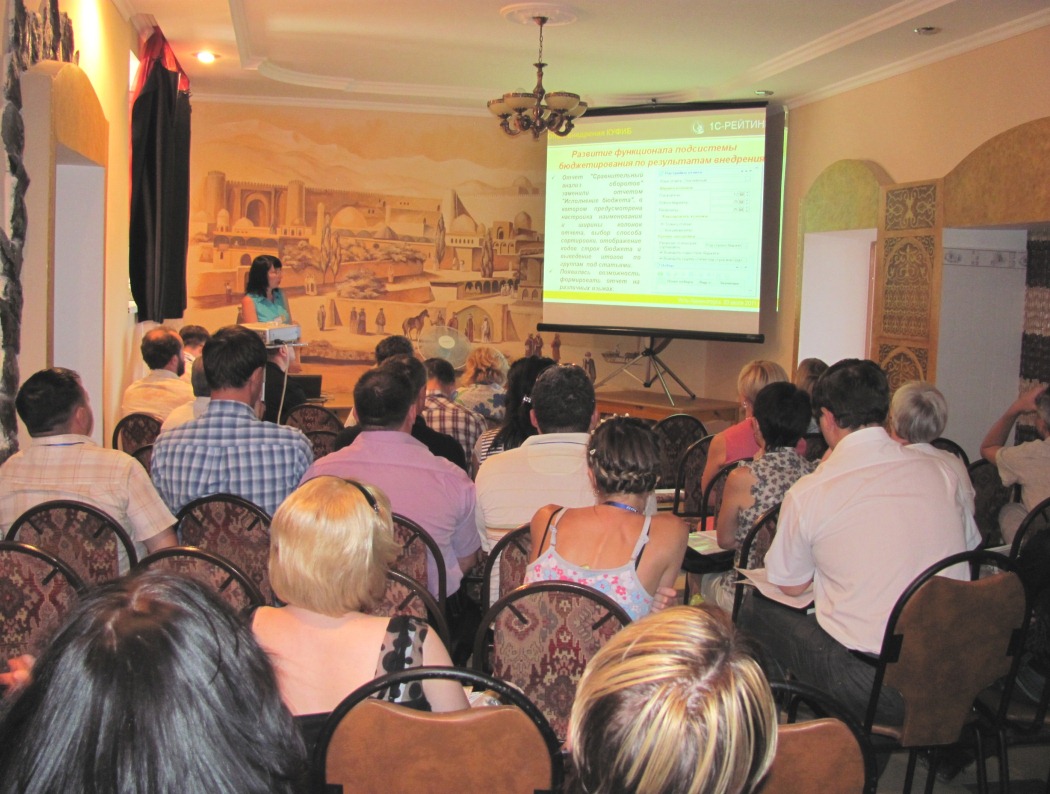 Евгений Пригода озвучил собравшимся планы развития направления отраслевых решений компании 1С-Рейтинг. Далее от планов перешли к практическому опыту внедрений: на примере трех проектов Лариса Федоренко рассказала о нюансах внедрения подсистемы бюджетирования программного продукта «1С-Рейтинг: Комплексное управление финансами и бюджетирование для Казахстана». Продолжил тему вновь Евгений Пригода, рассказав об использовании произвольной аналитики бюджетирования. После похождения обучающего курса по использованию данного модуля это было как нельзя кстати.