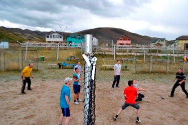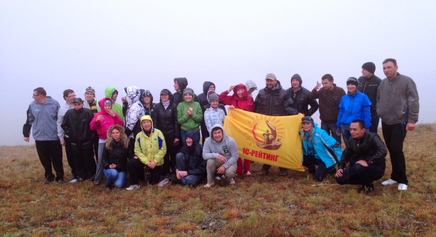 Как взошло светило на небо осеннее, оглядел люд окрестности сибинские, да был поражен красотой гор здешних и озером, что в горном кольце расположено. За трапезой утренней решение было принято о покорении горы высокой всей компанией дружной. И направились к вершине все, несмотря на препятствия разные и погоду ненастную, да покорили вершину ту грозную. И ясно стало всем, что для дружной сплоченной команды нет препятствий на пути любом. И на радости этой решили они состязания спортивные устроить да эмоции положительные получить. Не было предела фантазии спортивной – и катания на конях железных, что велосипедами в народе зовутся, и перекидывания мяча с названием иноземным «волейбол», и ладьи на воду спустили да в регату водную отправились, места невиданные оглядывать. И развивалось на ветру знамя желтое, и не было там ни проигравших, ни победивших, а только радость и дух единства.