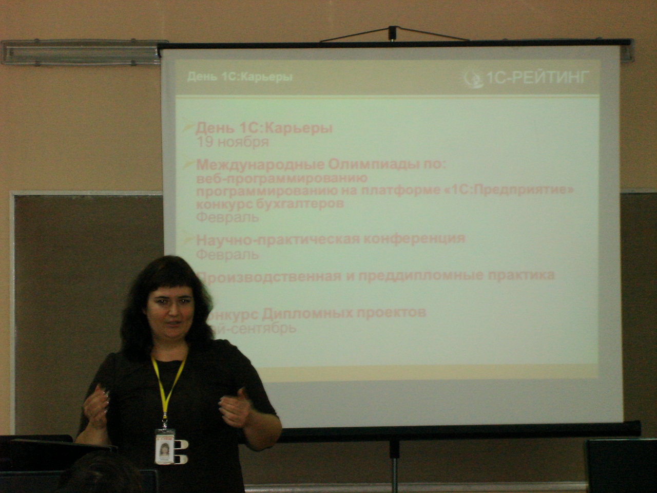 Студентам и преподавателям рассказали о программе сотрудничества с компанией 1С-Рейтинг, про развитие ИТ-индустрии, какие специалисты востребованы на рынке труда, о мероприятиях, которые помогают выбрать путь и построить свою карьеру на платформе «1С:Предприятие». Также встреча была посвящена одной из интересных и полезных тем для студентов специальности IT-технологии «Об авторском праве на интеллектуальную собственность».