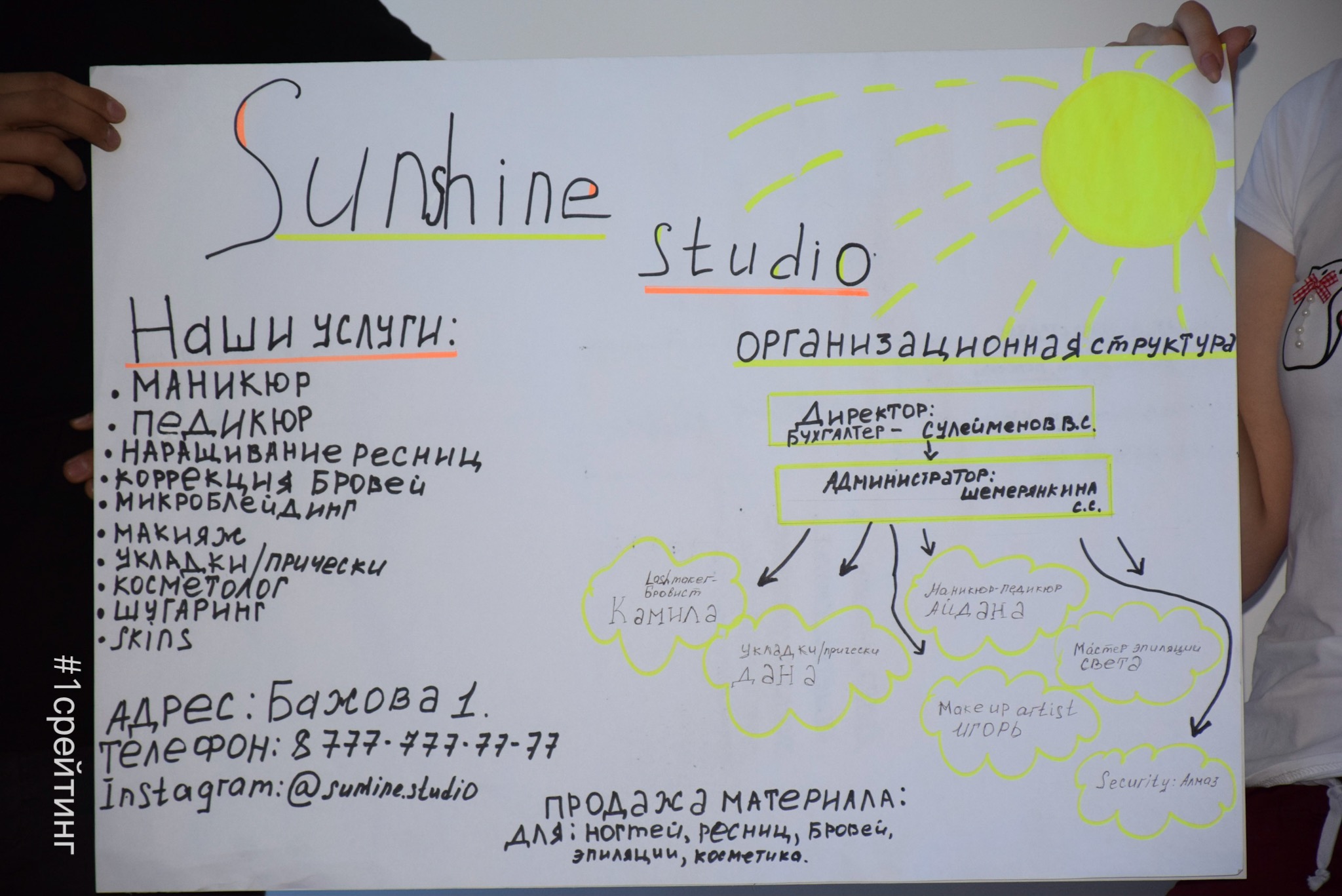 Перед студентами на практике стояла предпринимательская задача: смоделировать в командах небольшое предприятие, рассчитать финансовые показатели, проанализировать рынок и в последующем автоматизировать все бизнес-процессы компании в информационной системе «1С:Управление нашей фирмой».