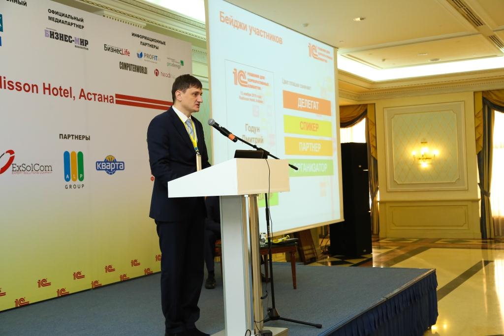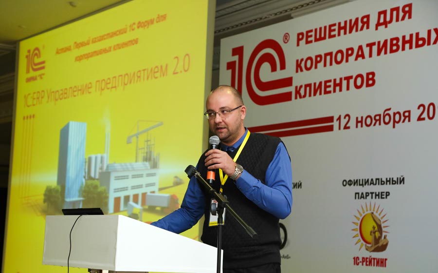 Руководитель отдела разработки типовых решений для Казахстана компании 1С-Рейтинг (разработчика программы 1С:ERP) Андрей Рюмин выступил в пленарной сессии форума. В своем докладе он озвучил официальную дату выхода бета-версии «1С:ERP Управление предприятием 2 для Казахстана» — 25 декабря 2015 года. Также он отметил, что финальная версия решения будет представлена уже 30 мая 2016 года.