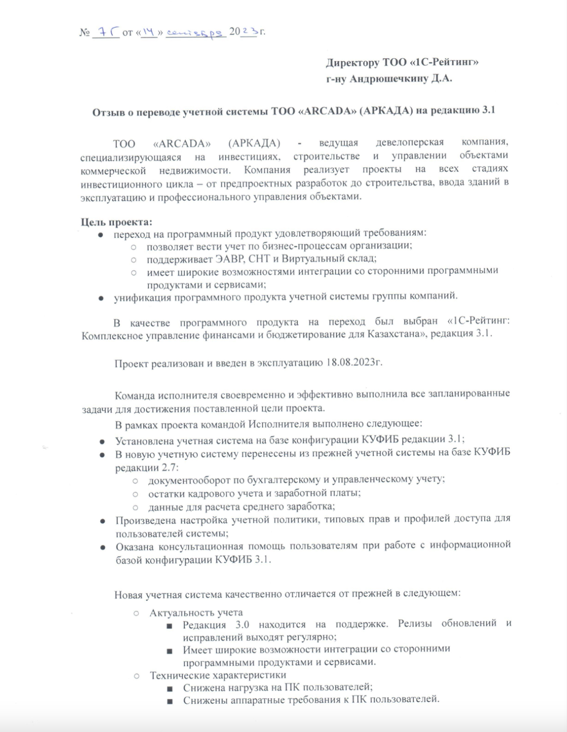 Проект реализован и введен в эксплуатацию 18.08.2023г.