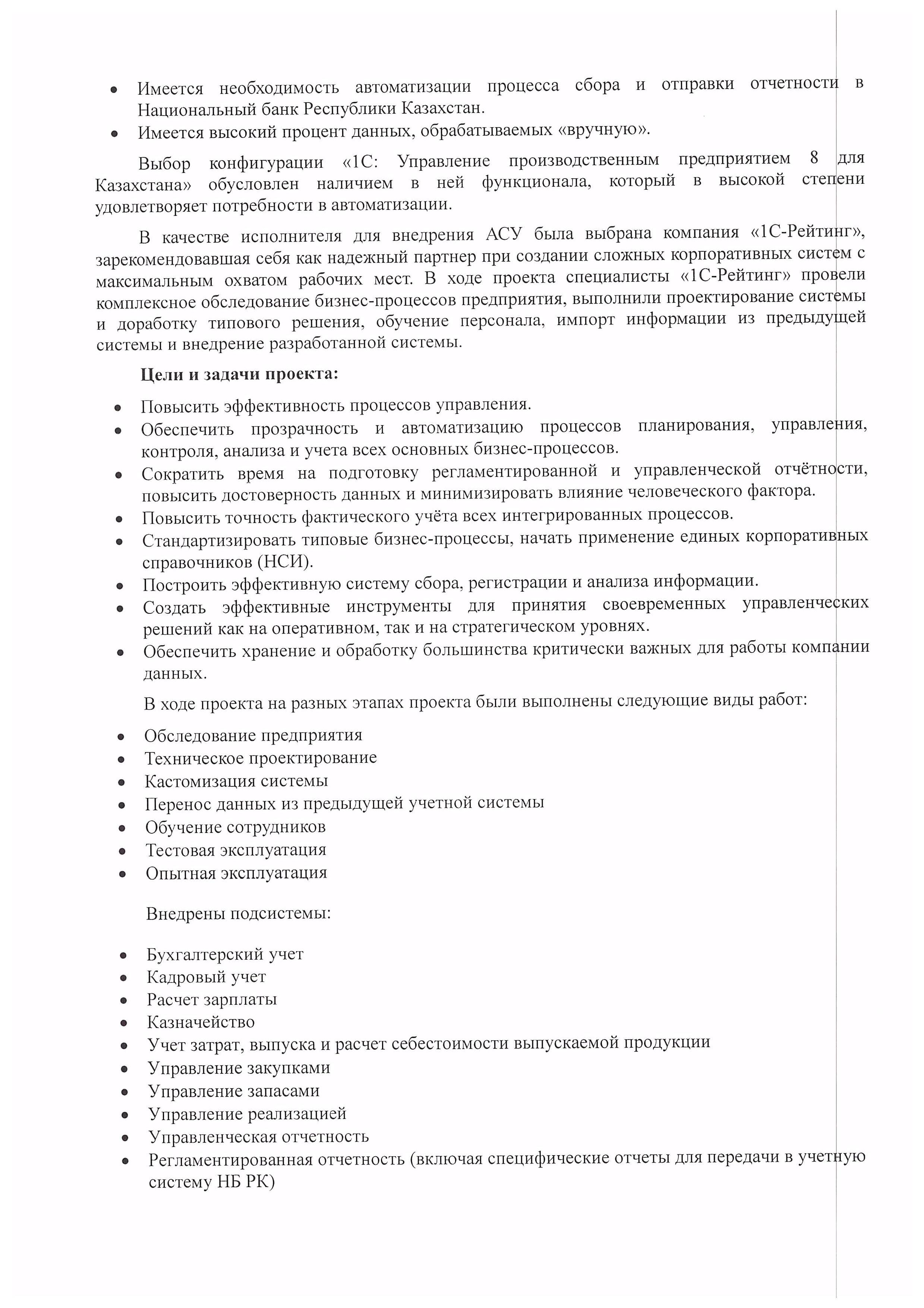 Выбор конфигурации «1С:Управление производственным предприятием 8 для Казахстана» обусловлен наличием в ней функционала, который в высокой степени удовлетворяет потребности в автоматизации.