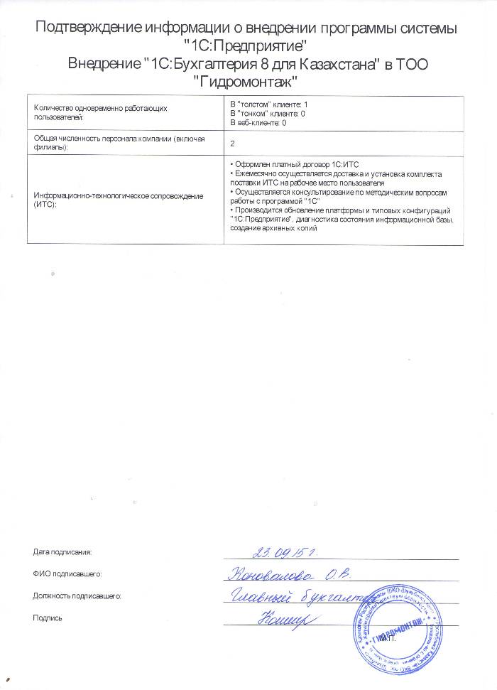 | Внедренное типовое решение: | 1С:Бухгалтерия 8 для Казахстана |