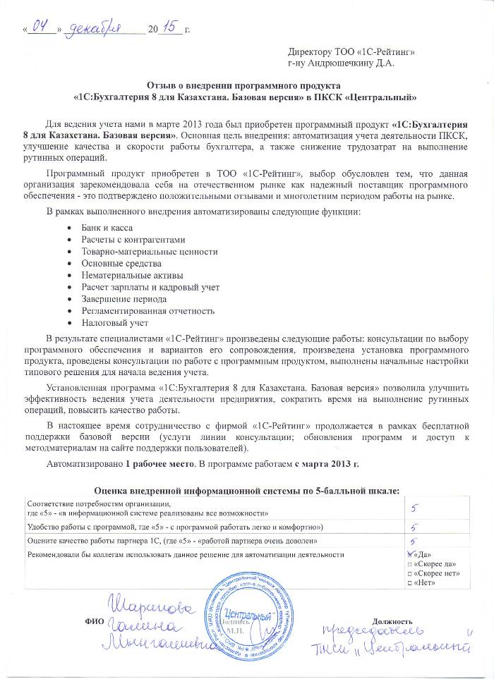 | Внедренное типовое решение: | 1С:Бухгалтерия 8 для Казахстана. Базовая версия |