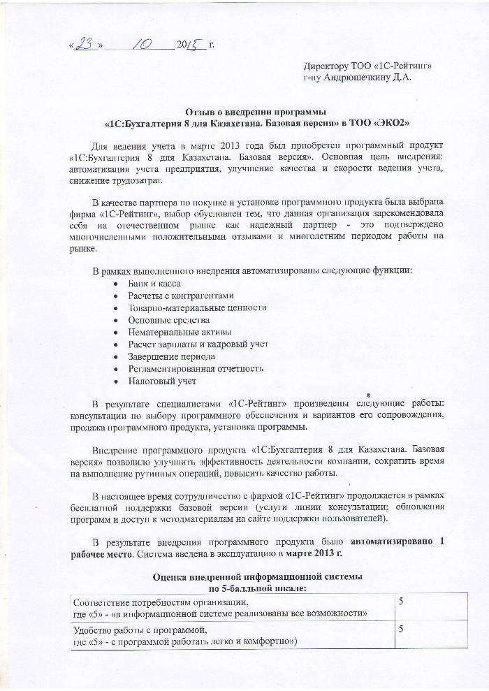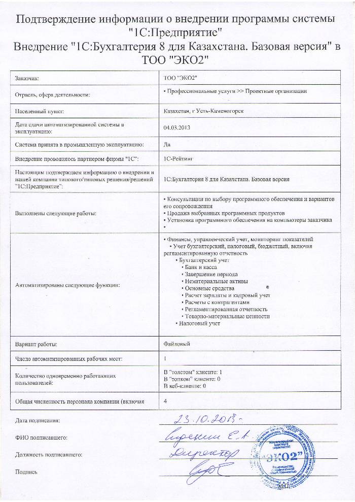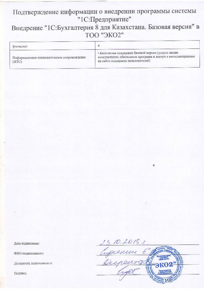 | Внедренное типовое решение: | 1С:Бухгалтерия 8 для Казахстана. Базовая версия |