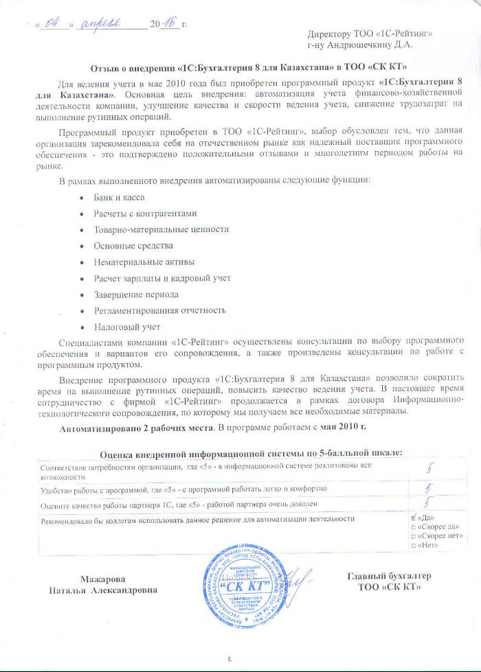| Внедренное типовое решение: | 1С:Бухгалтерия 8 для Казахстана |